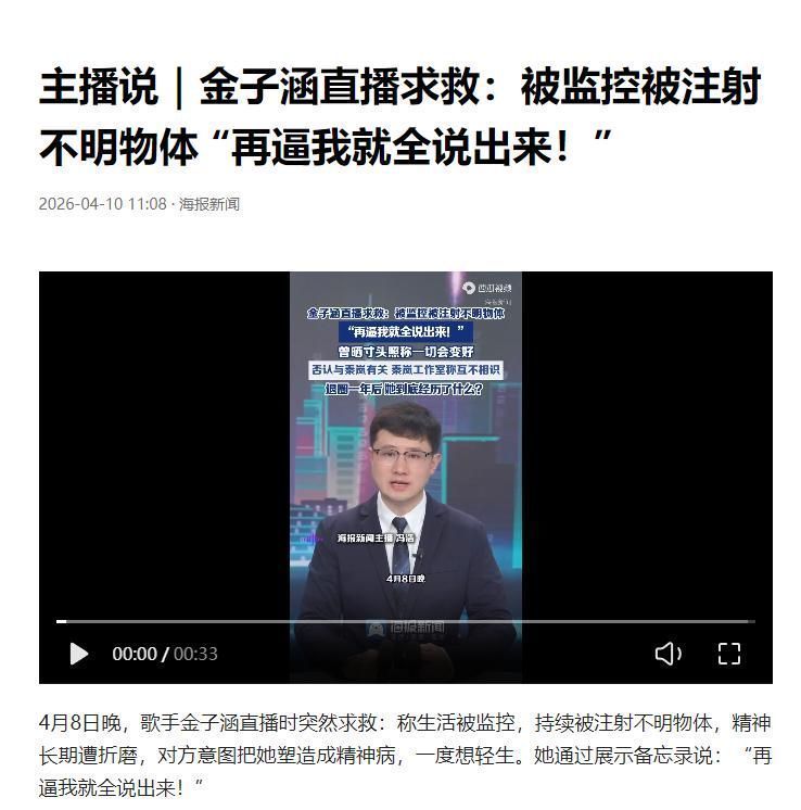 就在金子涵通过直播公开讲述自己被强行注射不明成分一事之后。